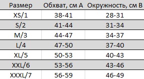 Таблица подбора размера