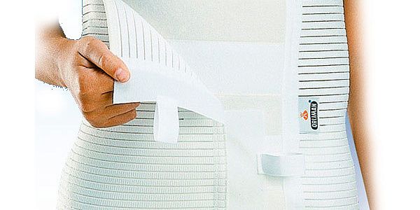 Бандаж изготовлен из прочного, эластичного воздухопроницаемого материала и снабжен застёжкой Велкро. Служит для разгрузки операционного шва путём укрепления передней стенки живота.