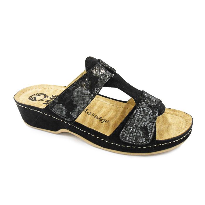 Сабо Mubb женские 242 черные MUBB Описание Верх обуви: натуральная кожа   Подкладка: натуральная кожа  Подошва: полиуретан Массажные стельки, запоминающие форму стопы Mubb - Комфортные и стильные модели повседневной обуви! Особенности Главная особенность обуви MUBB – массажная стелька, имеющая высокие амортизационные свойства, благодаря чему снижает нагрузку на голеностопный сустав и позвоночник, предотвращая боли в спине. Верх стельки выполнен из мягкой натуральной кожи, что обеспечивает отличное впитывание влаги и воздухообмен, придает особый комфорт при ношении. Анатомическая ребристая форма стельки, массирует рефлекторные точки стопы, стимулируя работу организма в течение всего дня. В такой обуви ноги меньше устают. Подошва обуви изготовлена из прочного противоскользящего полиуретана, надежно скрепляет все компоненты и делает походку уверенной. Вставка "Антишок" уменьшает ударную нагрузку в пяточной части, а также обладает противоскользящими свойствами, что значительно снижает нагрузку на суставы и позвоночник, уменьшая чувство усталости и дискомфорта при ходьбе. Данная ортопедическая обувь рекомендуется всем! Обувь Mubb обеспечивает улучшение кровообращения, снижение отечности и боли в ногах, уменьшение нагрузки в суставах нижних конечностей, равномерное распределение нагрузки на позвоночник и увеличение амортизационных свойств стопы, повышение устойчивости во время ходьбы, предупреждение развития патологических изменений в опорно-двигательном аппарате (остеохондроз, остеоартроз суставов нижних конечностей и т.д.), а также является профилактическим средством варикозного расширения вен. 008601nov /upload/iblock/9e4/9e41bd761bda60e0996e8599ca1127f8.jpg
